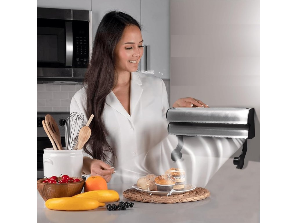 Profesionálny dávkovač fólie a kuchynských utierok 3 v 1 bol navrhnutý tak, aby splnil aj tie najnáročnejšie požiadavky moderných domácností. Trojnásobná funkcia vám umožní mať vždy po ruke všetko potrebné bez chaosu a zbytočného hľadania. Vďaka tomuto originálnemu kuchynskému pomocníkovi bude vaša príprava jedál jednoduchšia a rýchlejšia.