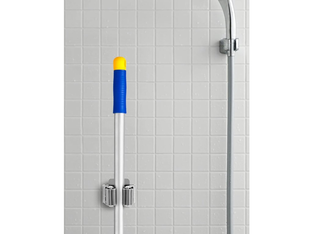 Vďaka špeciálnej konštrukcii s otočnými valčekmi si univerzálny držiak na mop a upratovacie pomôcky poradí s rôznymi priemermi rúčok. Pevne uchytí mop, metlu, prachovku či teleskopickú tyč a drží ich na mieste bez skĺznutia. Je ideálnym riešením pre rýchle a efektívne zavesenie všetkých bežne používaných nástrojov na upratovanie.