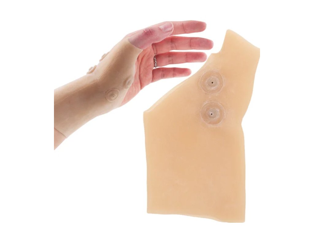 Táto bandáž je vyrobená z elastického, priedušného silikónu, ktorý spevňuje karpálny kĺb a karpometakarpální kĺb palca, zaisťuje kompresiu a tiež zahrieva kĺb. Zmenšuje bolesť spojenú s preťažovaním kĺbu.
