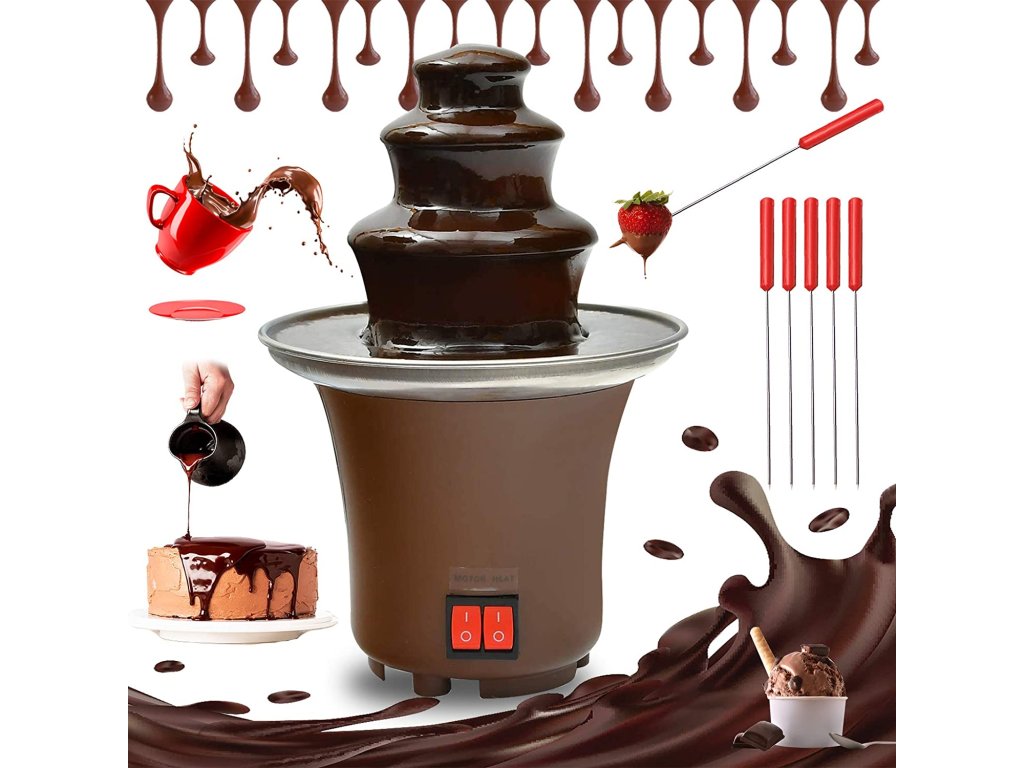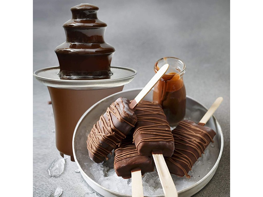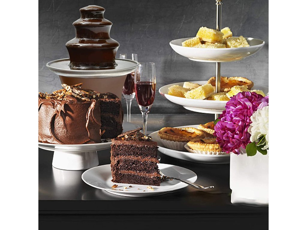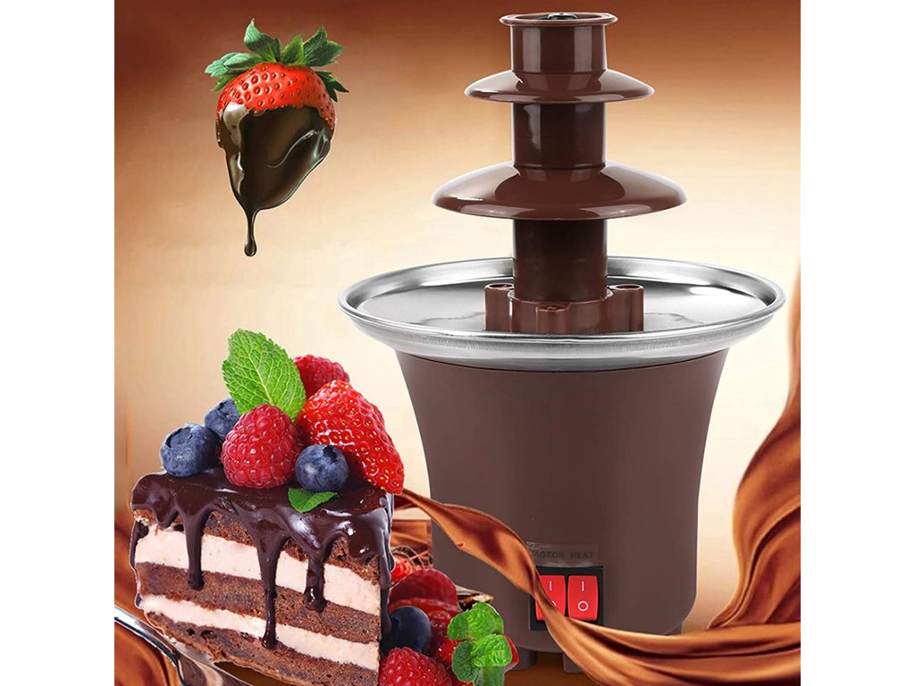 Čokoládová fontána je skvelé zariadenie na zdobenie dezertov čokoládovou polevou, do tekutej čokolády môžete namáčať aj kornútiky na zmrzlinu, oblátky, sušienky, vlastné pečené koláče alebo marshmallow. Stane sa neoddeliteľným pomocníkom pri pečení.