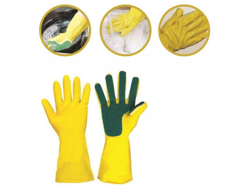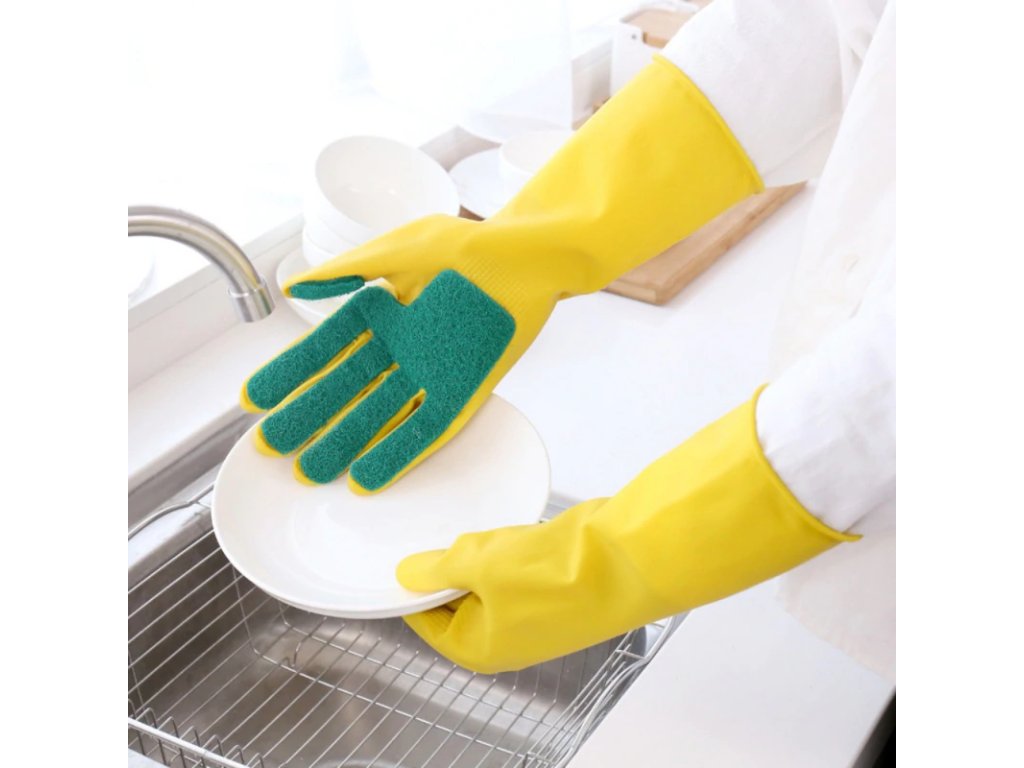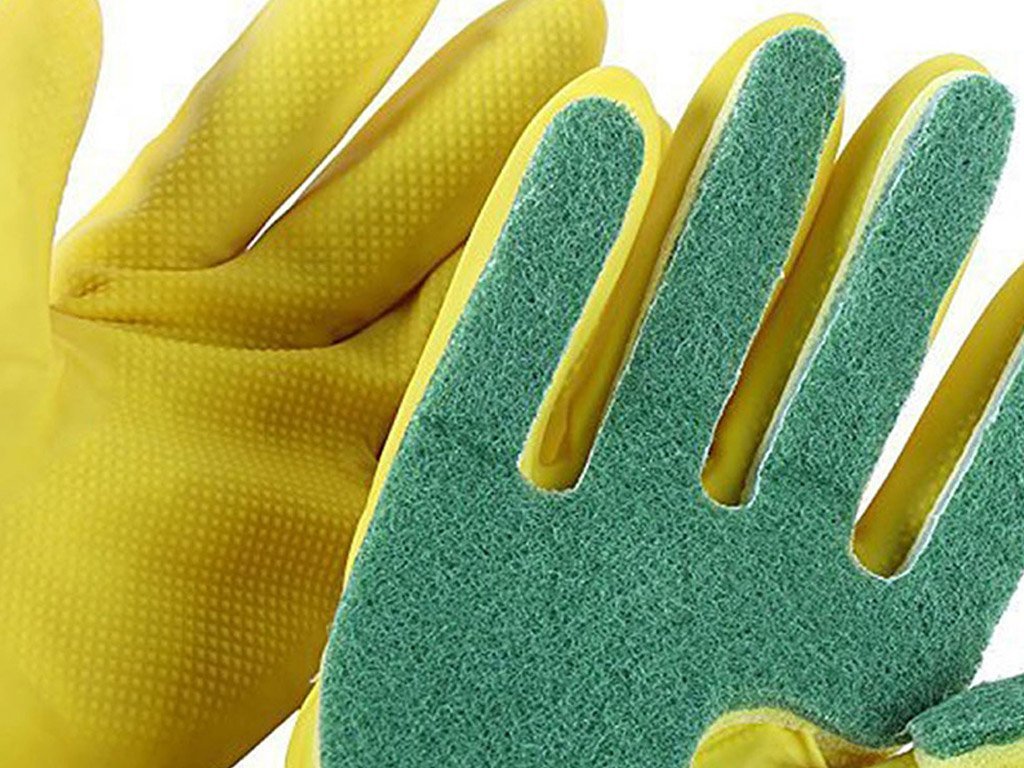 Rukavice na riad sú veľmi účinnou ochranou vašich rúk aj pri manipulácii s agresívnymi prípravkami. Zároveň, vďaka ich jedinečnému dizajnu získate účinnú pomôcku na umývanie – hubku priamo na rukavici.