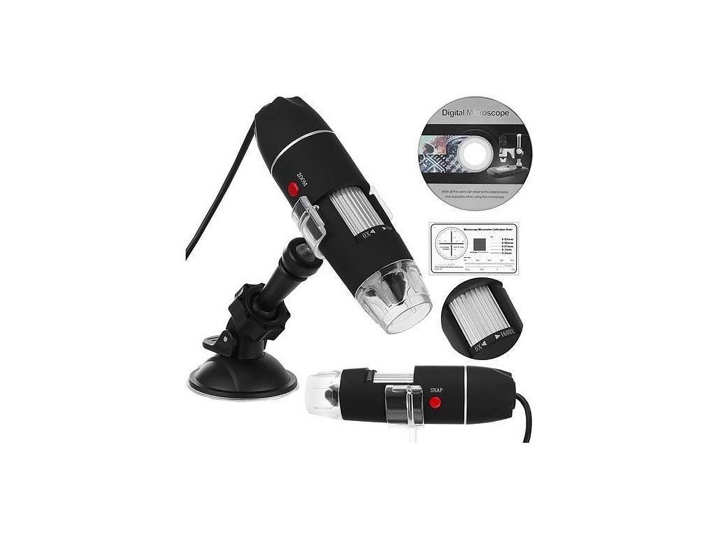 USB mikroskop má schopnosť fotografovať a vytvárať videá. Mikroskop je dodávaný s držiakom s prísavkou, ktorá umožní stabilné pozorovanie. Hlava mikroskopu sa otáča v rozsahu 360 stupňov, umožní presné nastavenie na sledovaný objekt. Prístroj je možné držať aj v ruke.