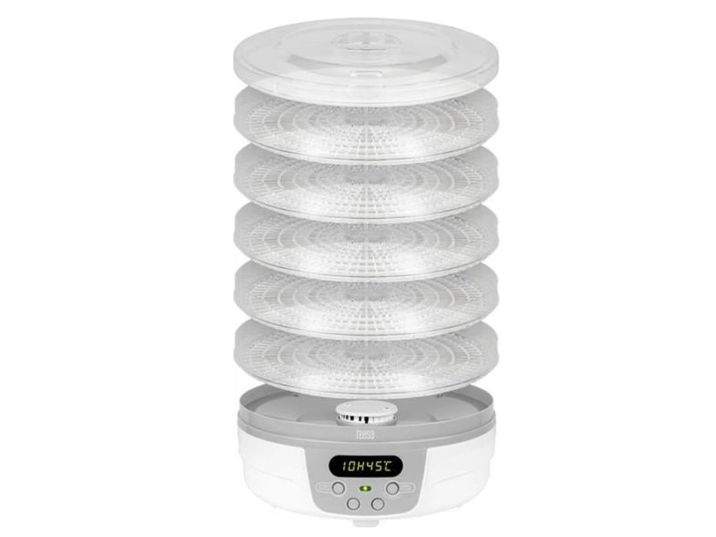 Jedinečná sušička na ovocie a na huby je dodávaná s 5 táckami, na ktorých pohodlne usušíte veľké množstvo ovocia, zeleniny a húb. Má kapacitu až 5 kg.