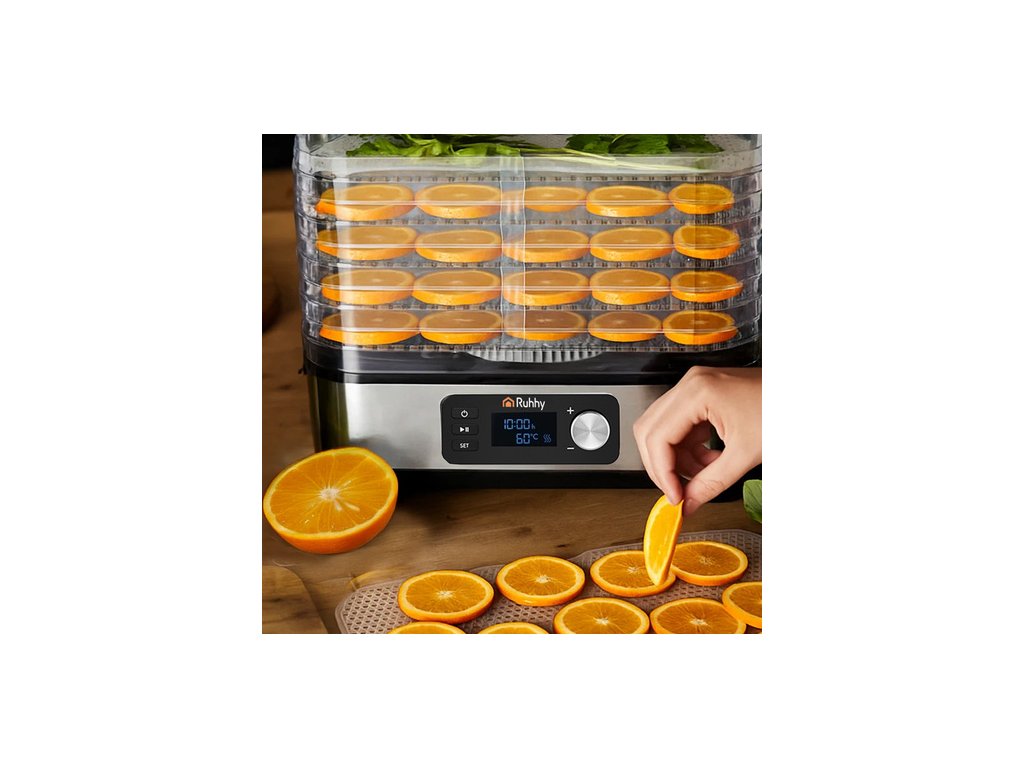 Táto úžasná sušička na ovocie a na huby má vstavaný časovač, ktorý umožňuje tlačidlom na LCD displeji naprogramovať jej pracovný čas od 1 do 72 hodín.
