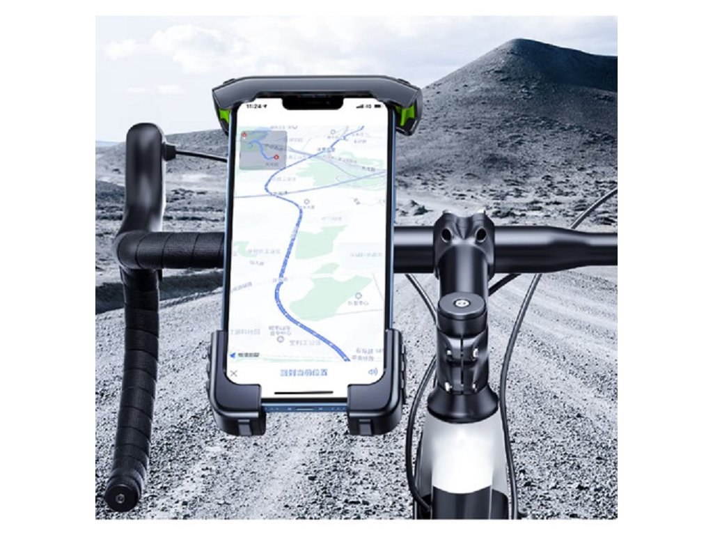 Držiak je určený na opakované umiestnenie na riadidlá bicykla. Časť, do ktorej sa vkladá telefón možno roztiahnuť podľa potreby, takže sa držiak ľahko prispôsobí väčšine mobilných telefónov. Pomocou plastového úchytu potom pripevníte telefón na riadidlá. Telefón tak budete mať na očiach. V prípade potreby môžete držiak opäť ľahko odopnúť a odložiť.
