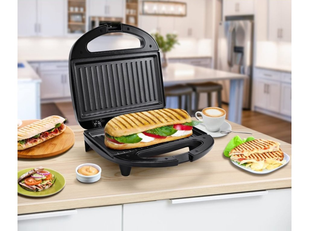 Jedinečný sendvičovač vám umožní pripraviť si sendviče, tortilly alebo iné dobroty za pár minút. Vďaka funkcii rýchleho ohrevu môžete už po niekoľkých okamihoch servírovať teplé a chrumkavé pochúťky. Tento spotrebič oceníte najmä v rušných ránach či pri nečakaných návštevách.