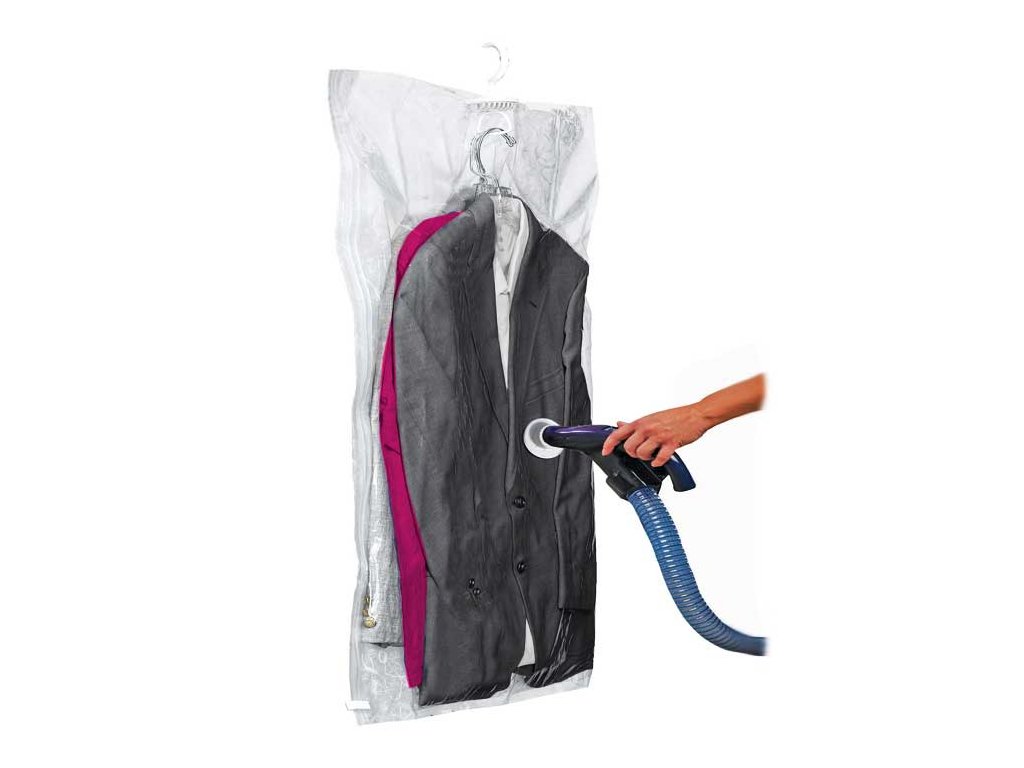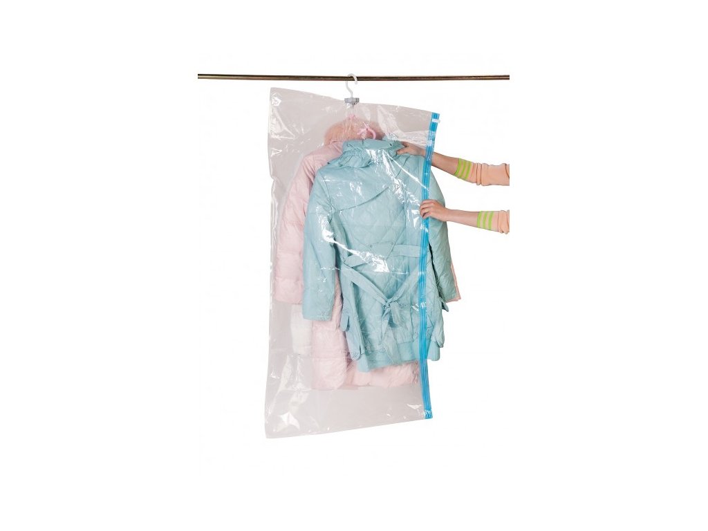 Závesné vákuové vrecia sú špeciálne určené na uskladnenie vecí v šatníkových skriniach. Vďaka zabudovanému věšiakovému systému ich po naplnení jednoducho a pohodlne zavesíte do akejkoľvek vešiakovej skrine.