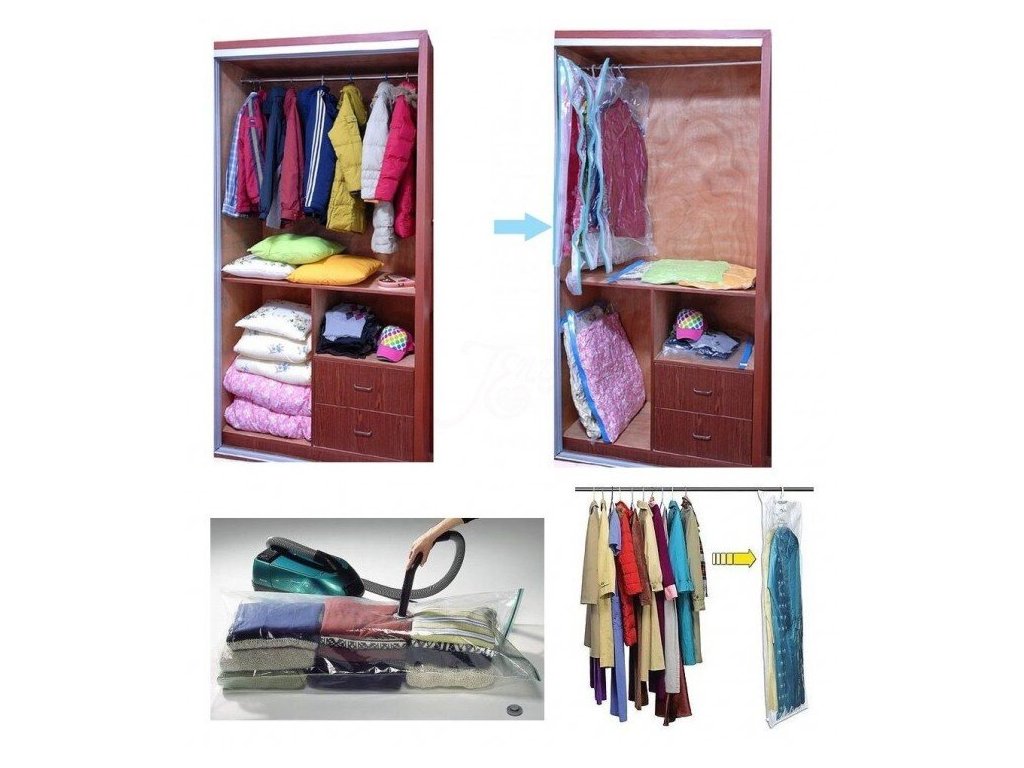 Vákuové vrecia vám pomôžu veľmi prehľadne uskladniť množstvo oblečenia, uterákov, odevov, vankúšov, alebo kníh, časopisov a iných vecí. Dokonale ochránia vaše veci pred vlhkom, plesňami, hmyzom, špinou, prachom a iným znečistením.